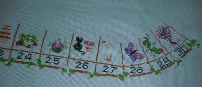 Pour celles qui démarrent seulement leur ouvrage, je ne peux que les encourager à suivre mon conseil de quadriller au moins le tour de la toile et bien faire attention à ne pas la prendre dans le mauvais sens... Cela peut vous éviter de grosses déconvenues !