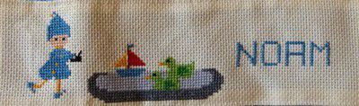 Notre Beya a encore travaillé pour le petit Lilian, cette semaine. Et il va hériter d'un joli bavoir bleu.